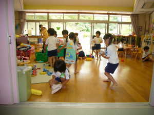 | 9月 | 避難訓練 おたんじょう会 がんばり山ムシ探し いねかり(年長) おむすびパーティー(年長) | 3月 | ひなまつりおたんじょう会 たねいも(ジャガイモ)植え(年中) 終業式 卒園式 春季保育 |